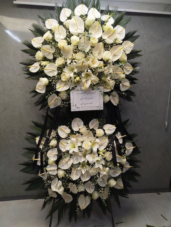 تاج گل دو طبقه تشریفاتی ترحیم گل طبیعی تازه در ابعاد ۲۱۰×۱۱۰